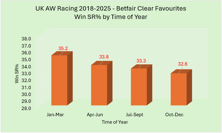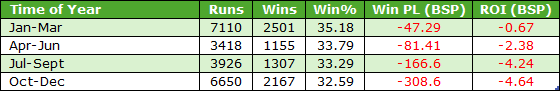 Favourites have had the best strike rate in the first three months of the year, and the remaining metrics correlate with that time being the best for favs: