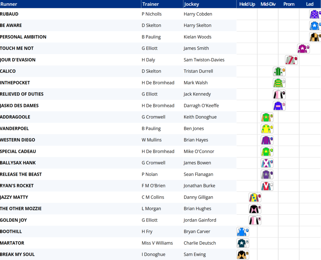 This a really open race and I could make a fair case for some others including Ballysax Hank, Release the Beast and last year’s winner Jazzy Matty.
