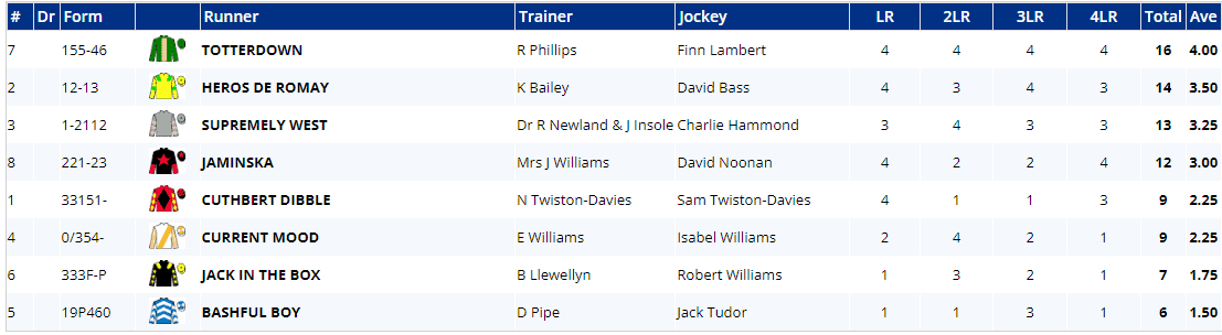 4/10 – Ridden by Danny Mullins (2) or Paul Townend (2)