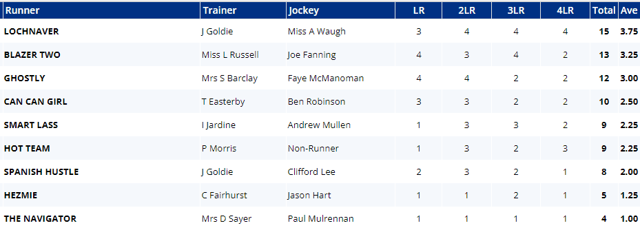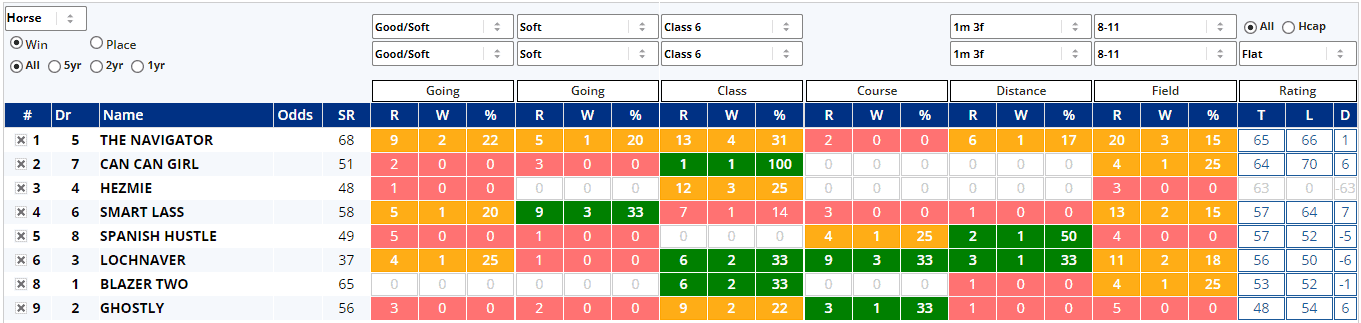 HINT: Look for a good sample size – ideally five or more – combined with a decent win percentage (30%+), and a positive figure in the profit column and as ever, please refer to our User Guide for further information.