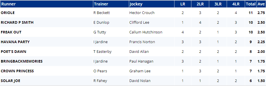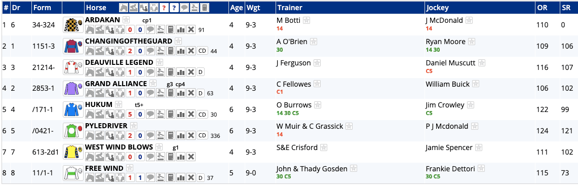 ...with only It Just Takes Time having more 3+ scores than 2 or under. This suggests we're going to get a falsely run race here, which will play into the hands of those who might well have been left behind had there been any significant early real pace.