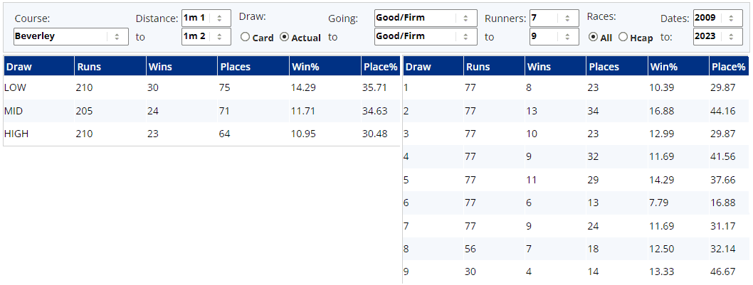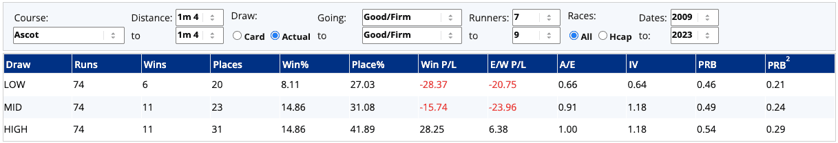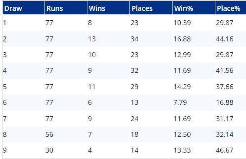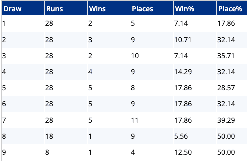 Our Draw Analyser suggests that those drawn centrally fare worse than runners drawn either side of them...