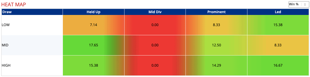 Sadly, this bunch aren't exactly the early pace types as shown from our pace/draw heat map below...