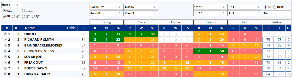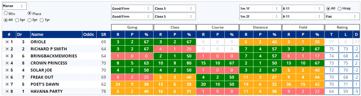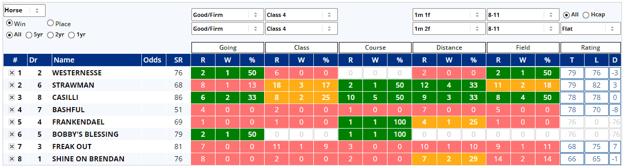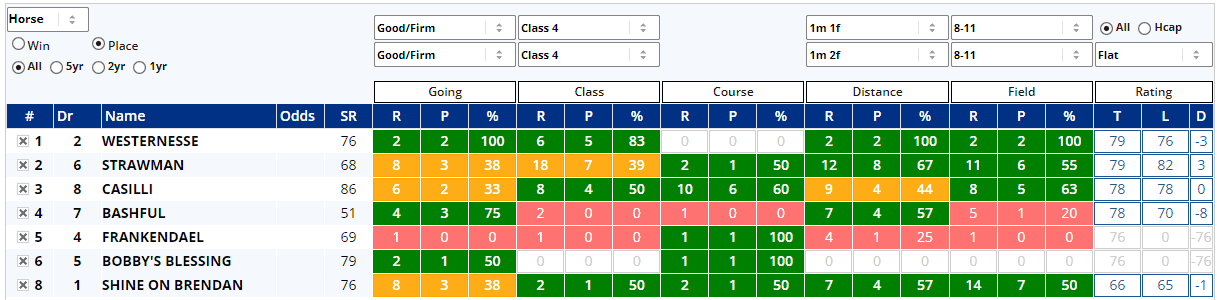 The Shortlist is Tuesday's free Geegeez GOLD feature and it's a simple (usually brief) report highlighting those horses with a largely ‘green’ profile in the Instant Expert Report each day and it covers win or place stats for both the current and the next day's racing.