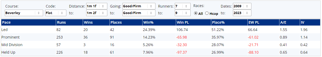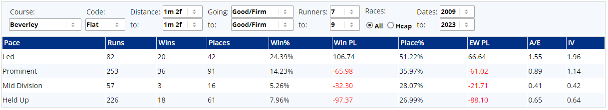 ...I'm assuming that's because they can hit the turn a little wider and take the bend at a greater speed, somewhat akin to an F1 racing line. Earls & Kitai will be pleased to have got the inside draw, but old warrior Summerghand could be well primed from box six, based on the above. Much will, of course, depend on how runners approach this race, because a 6f at Ponty certainly favours those most willing to get on with things from the off...