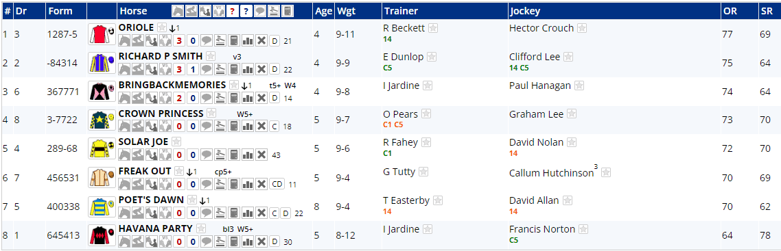 All of these are previous 6f winners with the veteran and top-weight Summerghand, Aleezdancer and Kitai all former course and distance winners. Featured horse Earl is coming off a short break of almost seven weeks, but the others have all raced in the last 8 to 19 days.