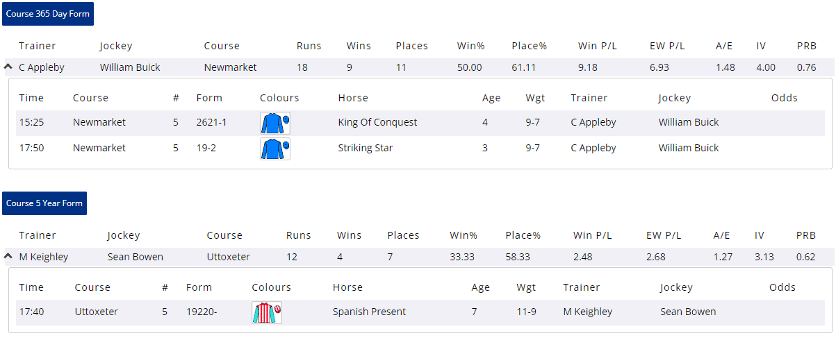 IMPORTANT NOTE: Where a horse has no UK/Irish form – i.e. it is having its first run in Britain or Ireland under Rules – it will not show up on Instant Expert at all.