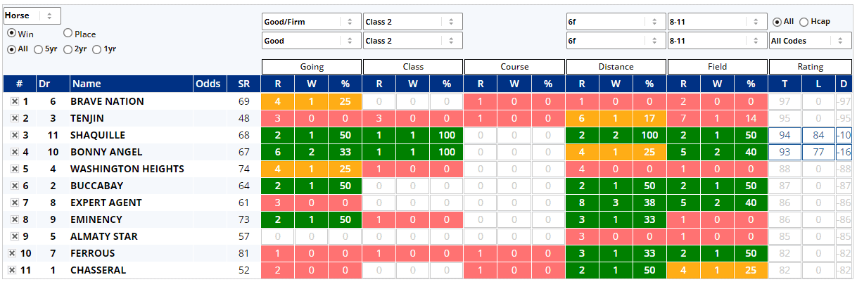 Sometimes we have little pace, draw or heat map bias to work with and in those cases, I tend to revert to recent form via the formline on the card and also historical data via Instant Expert and having done so, I'm not surprised that Free Wind is the early 11/8 favourite. She's clearly the one to beat here and the question really is whether you think 11/8 offers any value at all. Personally, I thought she might have been 6/4 or 7/4 early doors, but I wouldn't be surprised to her price shorten. Make of that what you will.