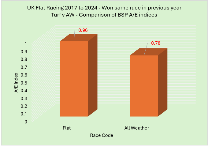 It should be noted the sample size stands at only 17 races. The A/E indices correlate strongly as the graph below shows: