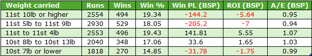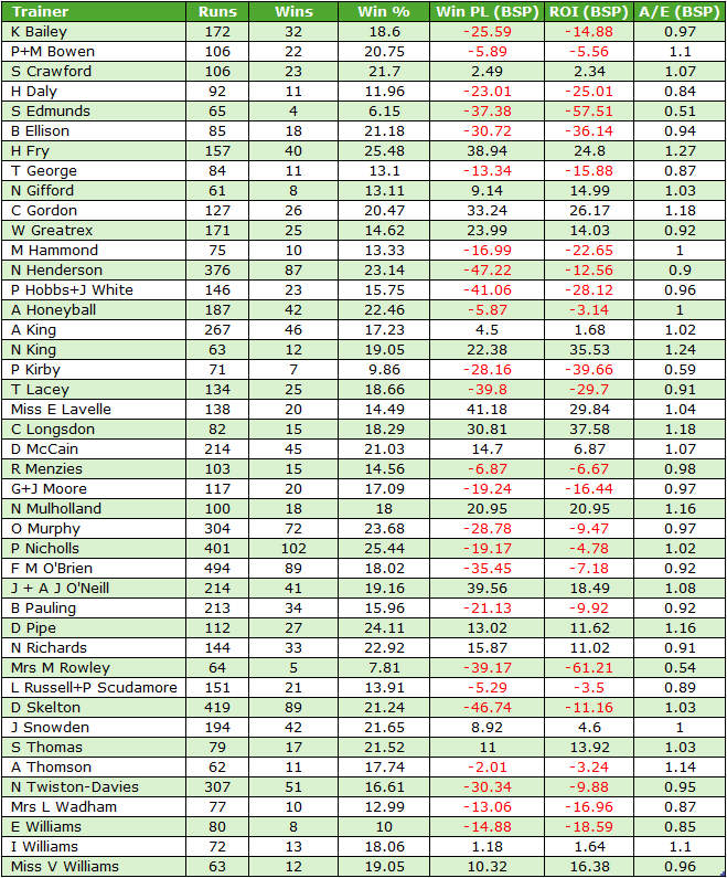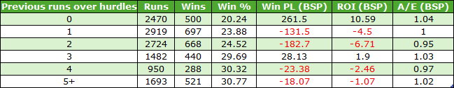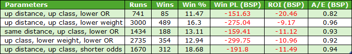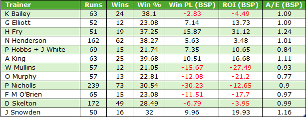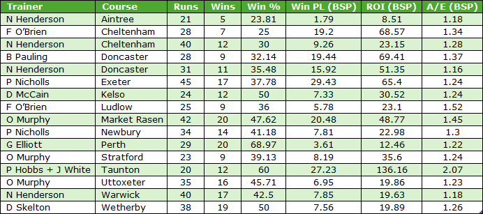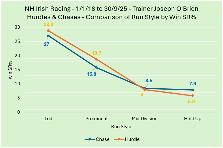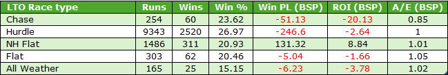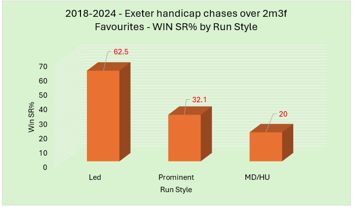Clearly, as with the 2m4f trips at Sandown and Haydock, on soft or heavy it has been hard to make up ground from further back. 21 of the 27 races were won by front runners (12 wins) or prominent racers (9). Hold up horses had a win rate of under 3% within their run style group which is the lowest figure seen to date.