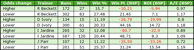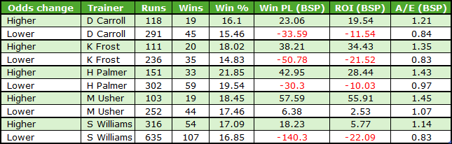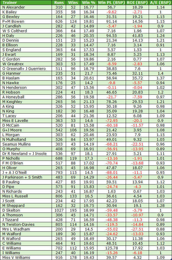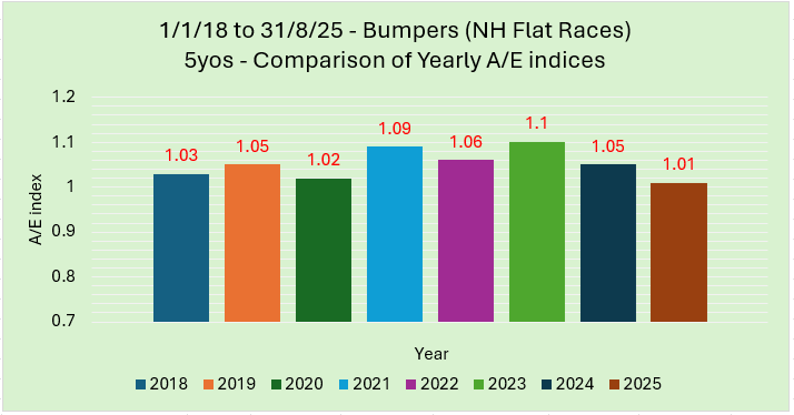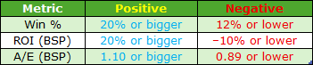 In terms of underfoot, once again we have seen a strengthening of the bias on softer ground. I will share the win strike rate percentages and the A/E indices once more. Firstly, the win stats: