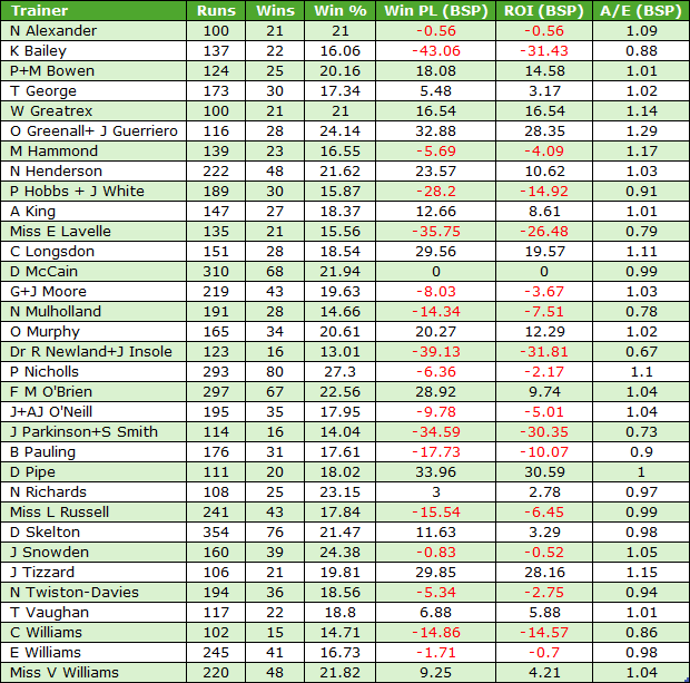 It could be argued that both Haydock and Sandown should be positioned higher than Carlisle in the list; but Carlisle’s overall sample size was bigger and that swung it for me, along with an outstanding A/E index of 1.57 and excellent IV of 2.4. The figures for both of these metrics were the highest of the four C&Ds shared to date, and comfortably so.