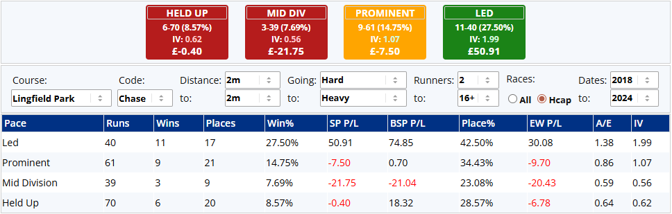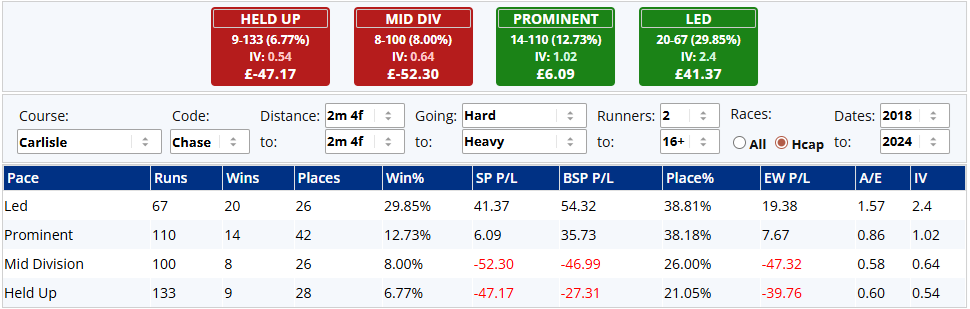 All in all, Haydock over 2m4f has strongly favoured horses racing at the front end.
