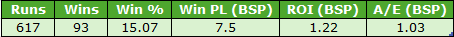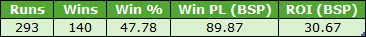 Front runners / horses that contested the early lead had an outstanding record when favoured by the market. However, it's a different story for those favourites that raced mid pack or at the back early. As can be seen, the bias over this course and distance has been very strong indeed, but still it wasn't quite enough to make my top ten. Exciting times ahead, then!