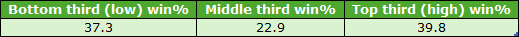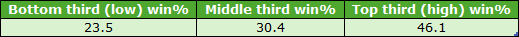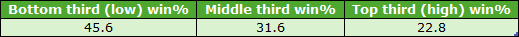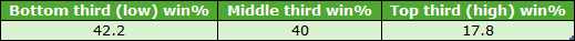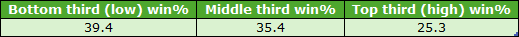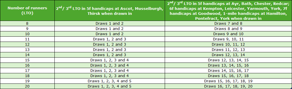 I do need to clarify what I mean by disadvantaged section of the draw. Specifically, I wanted to try and find the very worst drawn runners; so instead of including all stall positions within the ‘worst’ third of the draw, I set things up like this: