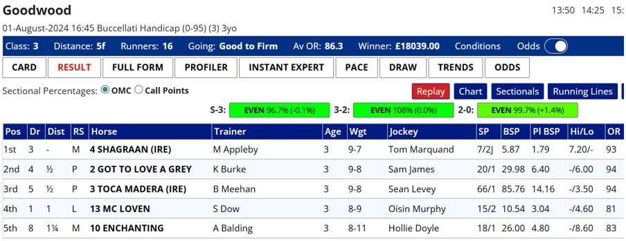 It should also be noted that the draw positions have been adjusted for when there were non-runners. For example, if the horse drawn 3 was a non-runner, then the horse drawn 4 was now effectively drawn 3, draw 5 became 4 and so on.
