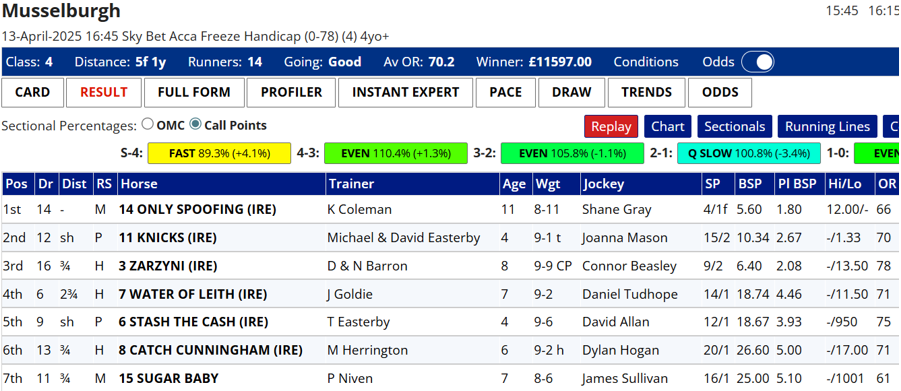 It's another smallish sample despite combining three more courses, but also another very profitable one. There was a winner priced BSP 35.44 so after commission that effectively accounted for half of the profits but even taking that out of the equation the figures would have been excellent.