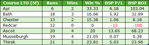 - Last run at one of Ascot, Ayr, Bath, Chester, Musselburgh, Redcar or Thirsk
