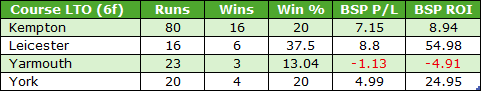 It is yet another group of courses combining to make a profit, and a bigger sample here due mainly to Kempton’s LTO qualifiers accounting for more than half of the total. (The advantage of a lot of races over a specific C&D). Here are the individual LTO course splits: