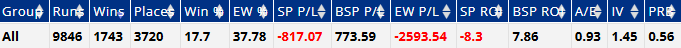And we've added Racing Post Rating and Topspeed, as well as RPR/TS Rank within a race (e.g. RPR rank 1 means the top rated horse on Racing Post Ratings). This image shows the top two ranked Topspeed horses' collective performance over the past two years in UK handicap hurdle/chase races. This is bound to include some big-priced winners skewing the data, but it's not a bad starting point for further analysis by any means!
