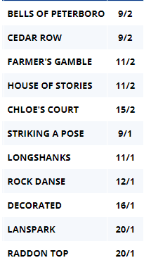 ...with Farmer's Gamble the likely back marker, but it is those that set the pace that tend to do best here...