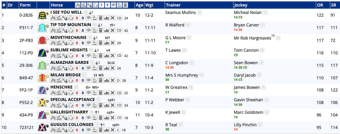 So, none of them tick all three boxes, but Tip Top Mountain, Sublime Heights and I See You Well feature twice, but to be honest with you, you can make a case for most of the field here, so I won't be having a bet.