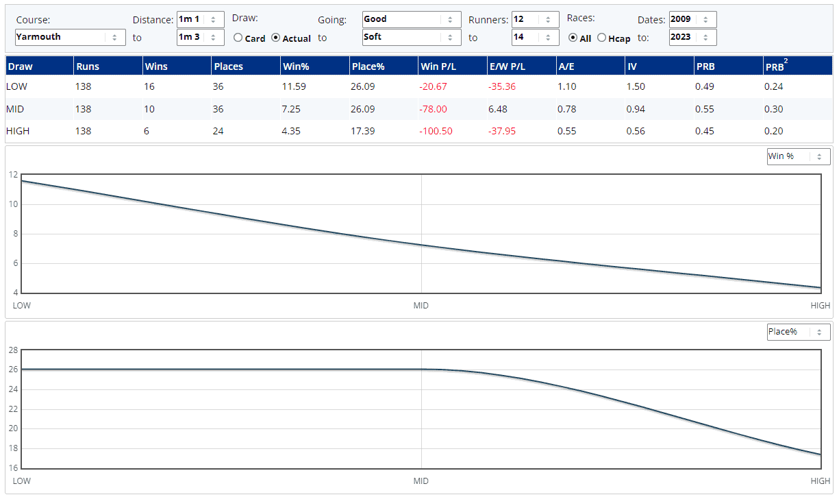 ...from either a win or a place perspective and the PRB3 figures suggest those drawn 3 to 10 would have the best chances here...