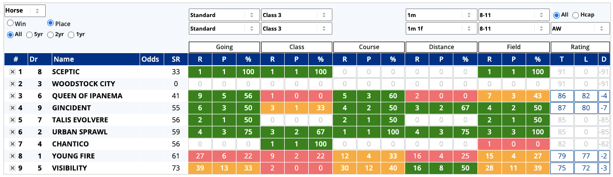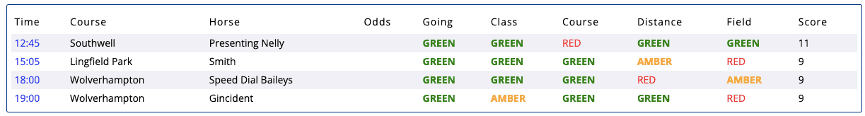 The Shortlist is Tuesday's free Geegeez GOLD feature and it's a simple (usually brief) report highlighting those horses with a largely ‘green’ profile in the Instant Expert Report each day and it covers win or place stats for both the current and the next day's racing.