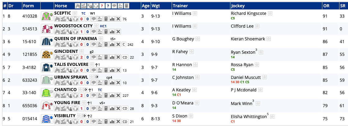 ...where, as you'd expect from The Shortlist, Gincident looks very well suited to the task in hand as do to a lesser extent, Sceptic and Queen of Ipanema. Young Fire looks like a blowout after plenty of attempts to get it right here, but Visibility looks interesting if not earth-shattering.