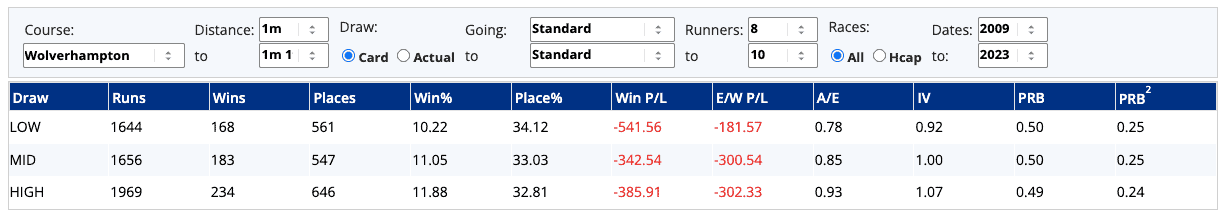 Well, it appears that there's a very slight advantage to having a higher draw, but those drawn lowest make the frame more often, but again the advantage is very slight, so I'm going to say that none of these should lose this race purely because if which stall they emerge from.