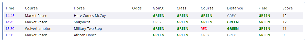 The Shortlist is Tuesday's free Geegeez GOLD feature and it's a simple (usually brief) report highlighting those horses with a largely ‘green’ profile in the Instant Expert Report each day and it covers win or place stats for both the current and the next day's racing.
