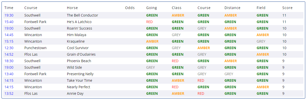 HINT: The best bets are not necessarily the highest scores. Rather, they are often the biggest difference between a Shortlist horse and the ‘best of the rest’ in that race.