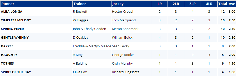 In a fairly inexperienced field, half of them (Timeless Melody, Alba Longa, Spring Fever & Gentle Whinny) run in handicap company for just the second time and none of the field have won here at Brighton before. That said, only Totnes has actually been here before! Spirit of the Bay, Spring Fever and Dayzee have at least won over this trip.