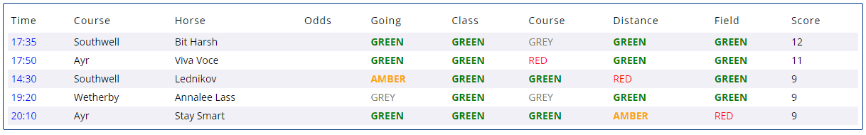 HINT: The best bets are not necessarily the highest scores. Rather, they are often the biggest difference between a Shortlist horse and the ‘best of the rest’ in that race.