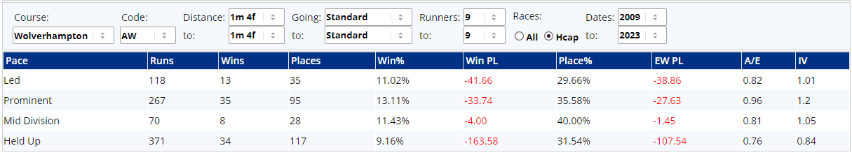 ...and they do seem to back up my theory, that aside from a slight disadvantage in the lower quarter of the draw, there shouldn't be too much in it and it's a similar story with pace. Hold-up horses have struggled to make up ground here, but thise racing any further forward all seem to have a decent enough chance of getting involved...
