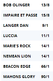 As for the places (and bookies will pay four here), I'd want at least 8/1 about a horse to make me interested, so let's look at the market...