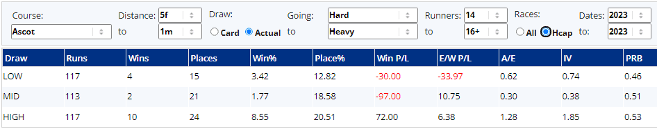 The Royal Meeting, though, does provide the best opportunity to profit from draw bias at Ascot. Essentially, for me there are three ways I tend to play the draw at Royal Ascot on the straight course: