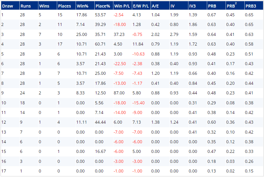 While draw bias may not have the overall impact it had twenty to thirty years ago, there are still enough edges in play to give shrewd punters a leg up. However, it is crucial to fully understand how strong any biases are and whether the market has compensated, or in some cases over-compensated. It has been two years since I last looked at draw bias on Geegeez so let’s crack on and review a selection of my recent findings and their potential ramifications.