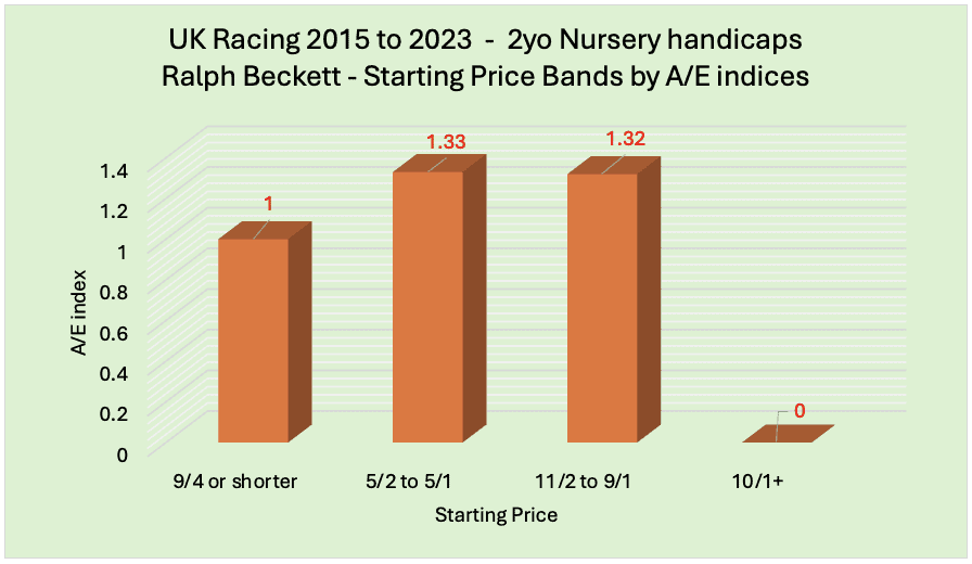 The stats are also very interesting for Beckett when looking at ALL his runners across ALL SP prices – we see the following based on A/E indices: