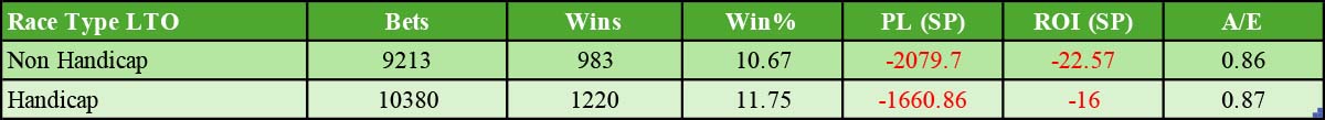 Next, look at the LTO Race Type, splitting by handicap vs. non-handicap.