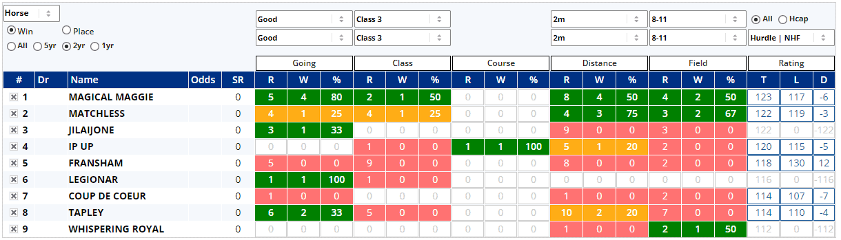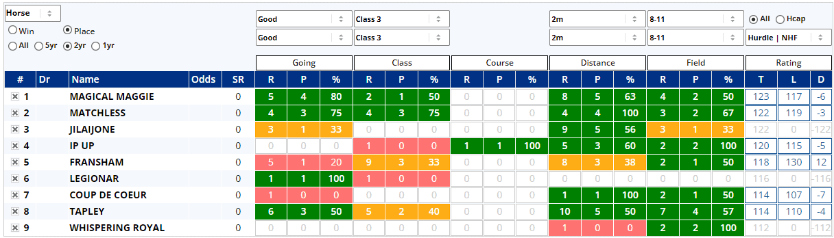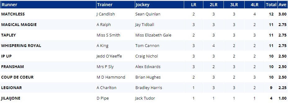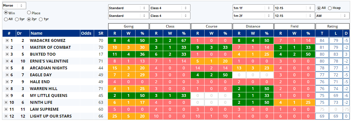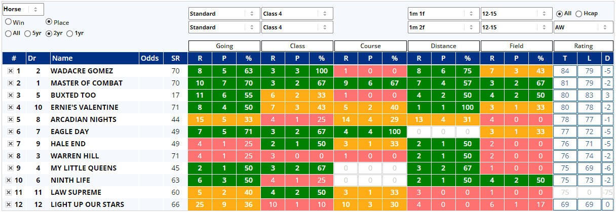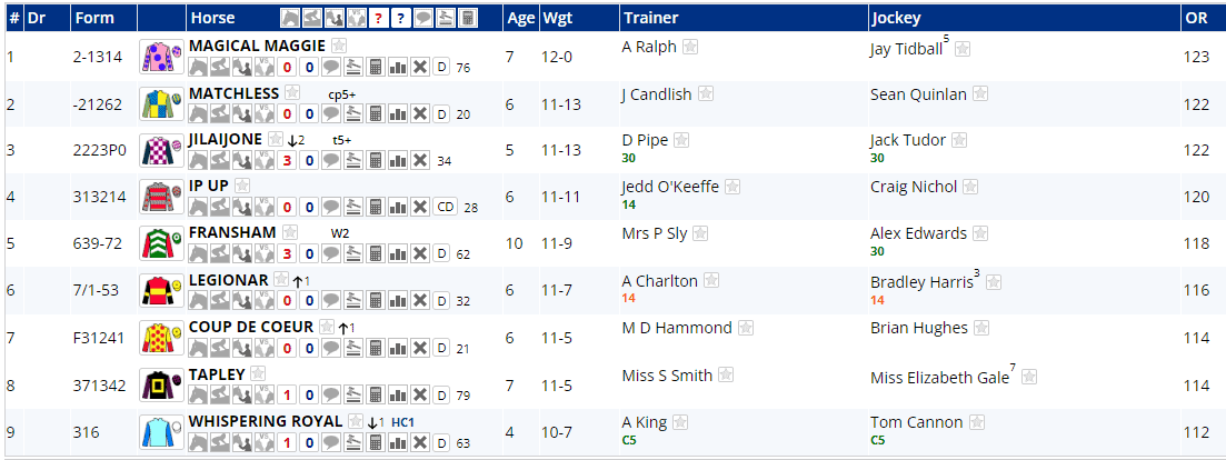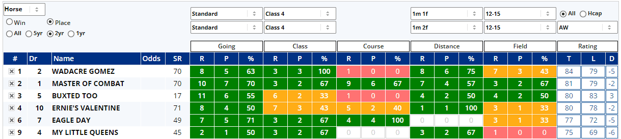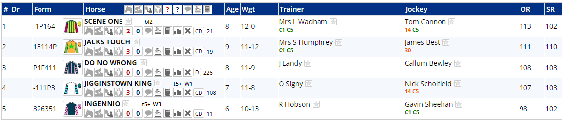 Sadly, our featured runner Dubai Days is now a non-runner, but it's a decent race with or without him, so I'll carry on as planned with what still looks a super-competitive race with no less than six LTO winners. Only Heltenham (2 wins from 3), Take All (3rd LTO), Soul Icon (2nd LTO) and Half Shot (pulled up) failed to win their last race, whilst Prairie Wolf (three wins from four) and Jet Plane are both coming here seeking a hat-trick and all ten runners have won at least one of their last six outings.