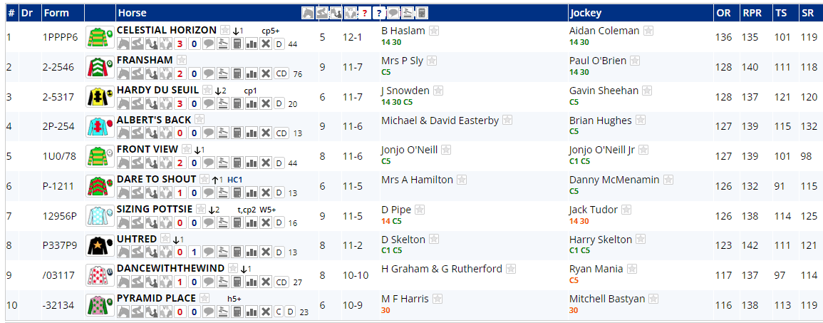 Winning this race last year makes Get A Tonic, the only course and distance winner in the field, as Charm Offensive's two wins here were at 2m4½f/2m5f and Aurora Thunder is the only other course winner, having also won over 2m4½f. Great Snow and Jasmiwa have won at this trip in the past, though and stamina may be the key here.