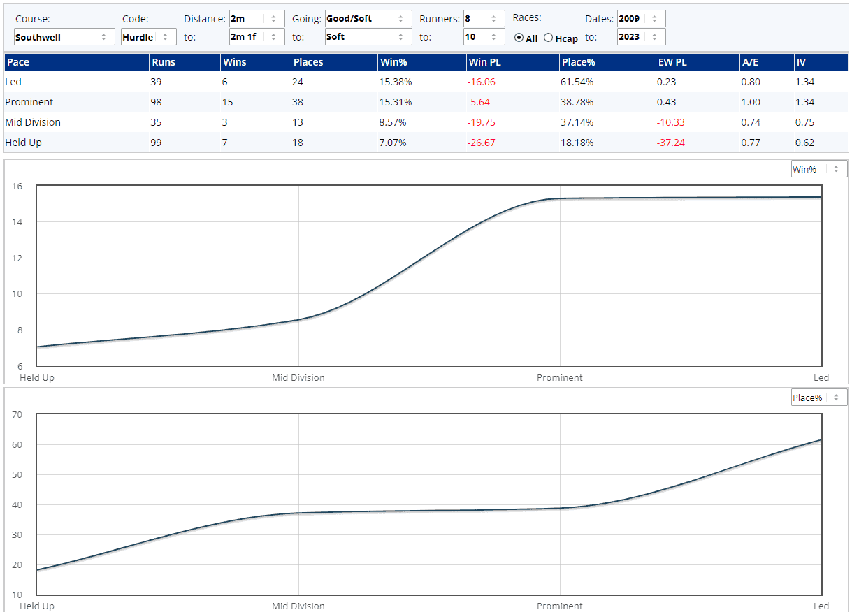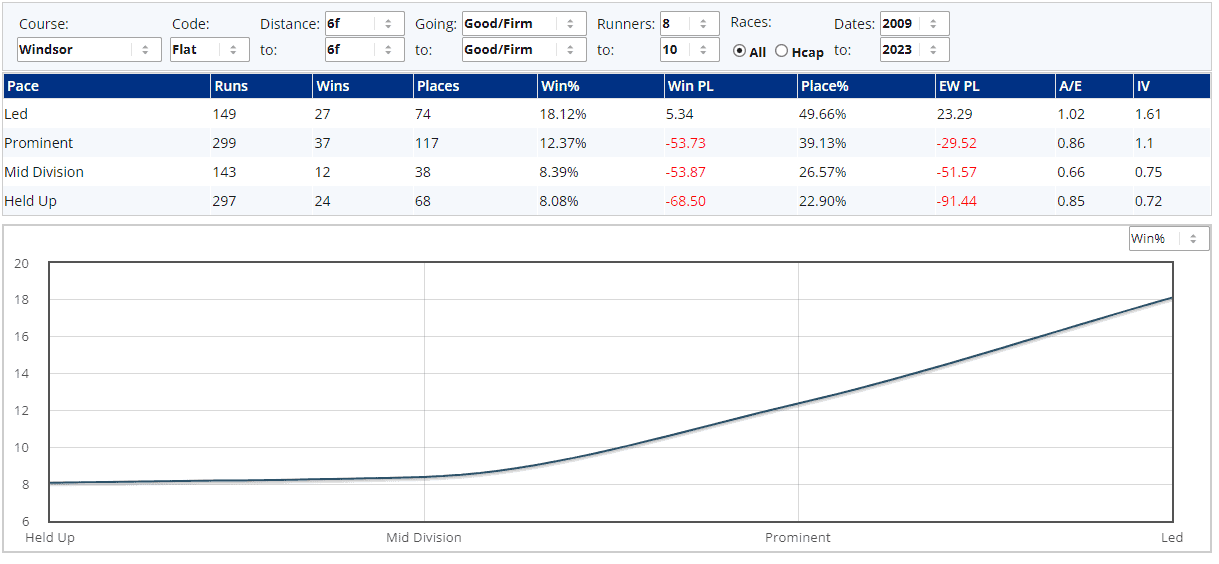 The pace tab on our racecards helps to make a reasoned assumption based upon a field's most recent runs as to how their next race might unfold. This information is vastly under-used by UK bettors, but we feel it's that important that we make this info totally free for all races every Sunday & Monday.
