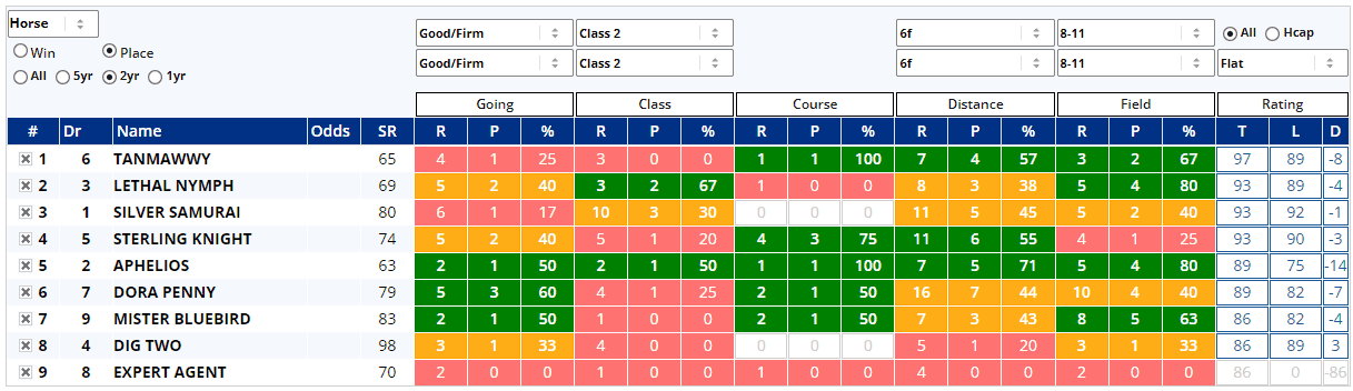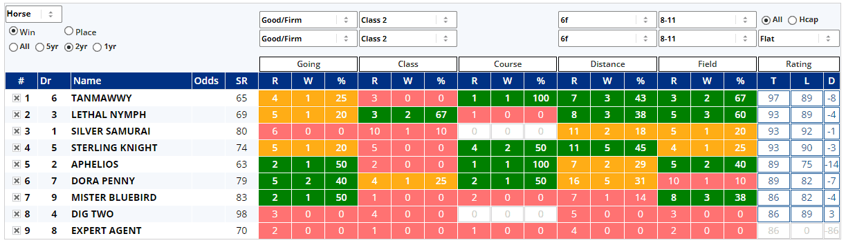 The entire field have raced in the last 12 to 23 days, so they should all be fresh enough to be competitive here for a race where three of them have already won on good to soft ground, according to Instant Expert, which also informs us that only one of them has scored at Class 3 before...