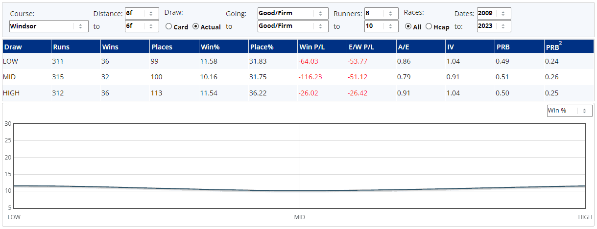 The other concern about Ravenscraig Castle is the fact that he's 0 from 13 over the last two years and is still 10lbs higher than his last win. He will, of course, run from pretty much the centre of the stalls from box four, but the draw really shouldn't be having too much effect over such a lengthy trip and this theory is backed up by our stats, albeit off a small sample size...