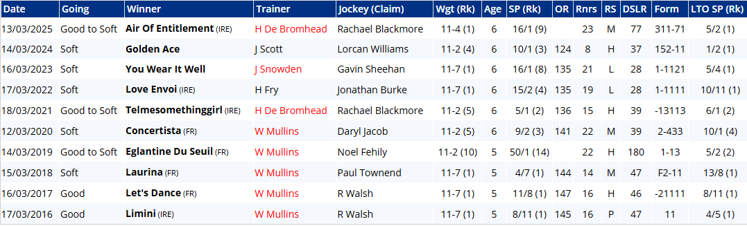 Mares' Novices' Hurdle Recent Winners