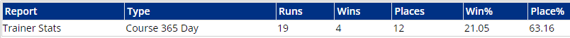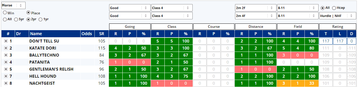 ...and with this pair being on my preview and the Instant Expert graphic, they both go on my ticket builder, to which I'll add Hell Hound, who was far from disgraced on his hat-trick attempt last time out, finishing third after a four month layoff. The horse in fourth that day has since finished second at Plumpton, whilst the horse in eighth has returned to Fontwell and won.